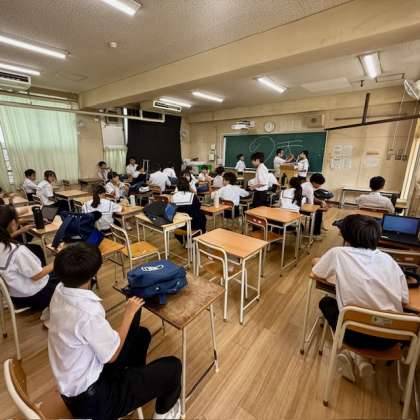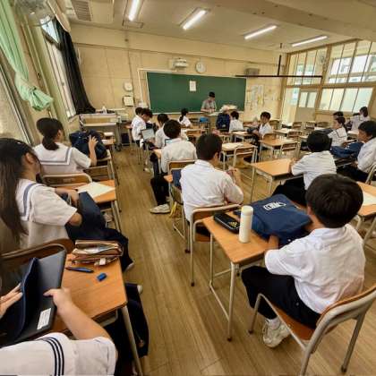9時の集合時間が来ました。各教室でオリエンテーションをしています。9時30分頃には出発予定です。