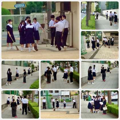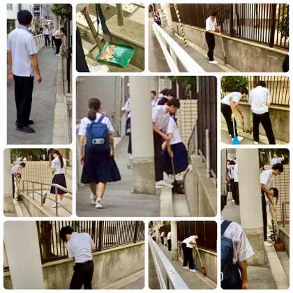 1年生はグラウンド周辺を、2年生は学校東側、なにわ筋沿いを、3年生は学校東側、玄関周辺を綺麗に保ってくれます。