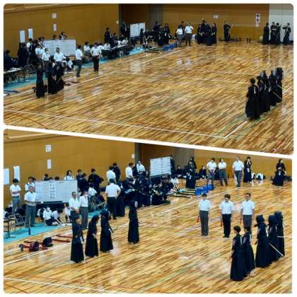 今日は、女子学校団体様が行われました。一回戦は市岡中学校と対戦しました。無事勝ち抜いて二回戦に進出です。通常団体は5人対5人で対戦しますが、大淀中学校は4人で戦っています。