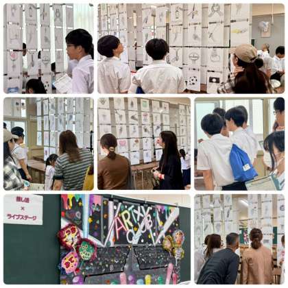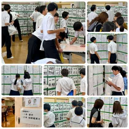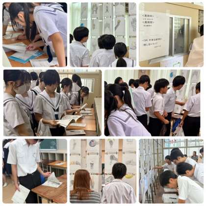 1年国語科習字・2年国語科短歌鑑賞文、3年美術科作品展、美術部部活動冊子、サポートルーム・中津支援学校合同作品です。