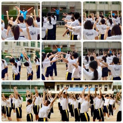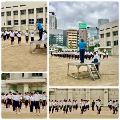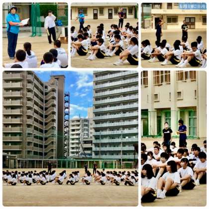6時間目、2年生が体育大会学年練習を行いました。今日は主に、開会式と閉会式の練習をしました。