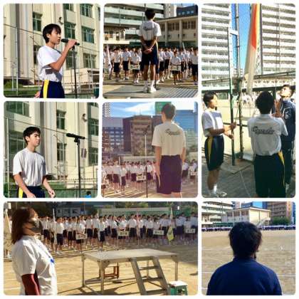 国旗掲揚の際に国歌(君が代)を斉唱しましたが、とても堂々と歌う歌声に身が引き締まります。