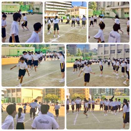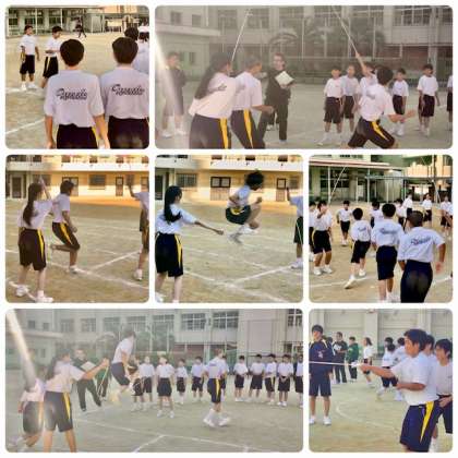 クラス対抗、大縄跳びの予行をしました。学年が上がるにつれ記録が伸びていきました。