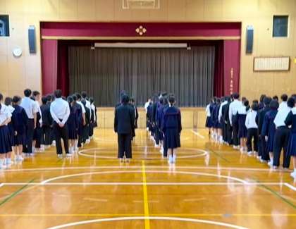 おはようございます。水曜日の朝は、体育館で1年生が学年集会を行なっています。