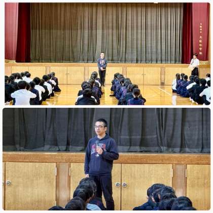 今朝のお話は、吉田 敬 先生でした。吉田先生からは「11月も半ばを過ぎ、気がついたら年末に近づいています。あと、2週間で2学期末テストがあります。今年もあと少しです。入学式から振り返ってあっという間に今を迎え、時間の経つことの早さを感じます。皆さんが自身を振り返って成長できましたか?まだ、小学生の続きのような人も見られます。人に応援される人物になってください。人に信頼される人物になりましょう。そのためには、友達を思いやり、言葉や態度を見直すことが大切です。」と話してくださいました。