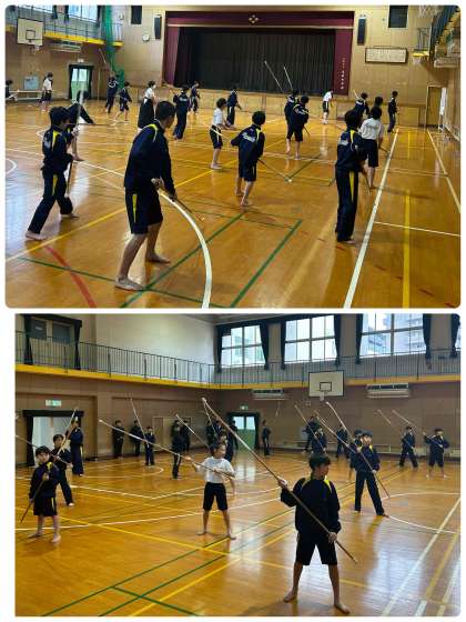 今週、来週と2週間にわたり、1年生保健体育の授業で武道の領域でなぎなたを行います。