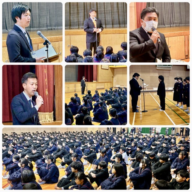 続いて終業式です。校長先生からは2学期を振り返ってお話ししていただきました。内容は「大淀中学校便り」をご覧ください。生徒指導主事の進藤先生からは、冬休みの過ごし方についてお話しくださいました。