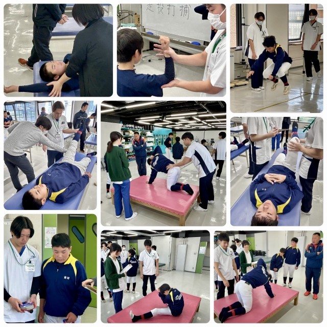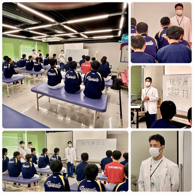 1月10日(土)野球部部員18名は校区内にある大阪医専を訪問しました。今回は「野球をするための体を知ろう!」と題して、理学療法学科 宇佐美先生、学生のみなさんに、野球力チェックの授業で、野球をもっと上達したい、ケガを予防したいのご指導を受けました。