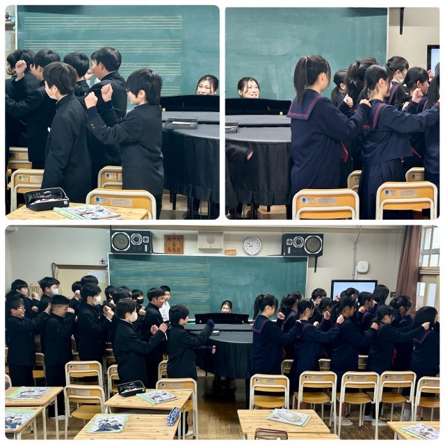 1年1組の音楽です。今日は共田先生の授業です。