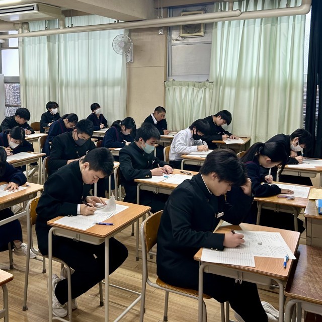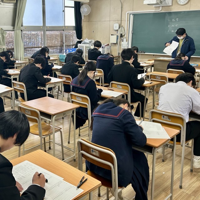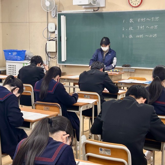 本日より、3年生は学年末テストです。今日は、数学、社会、保健体育です。