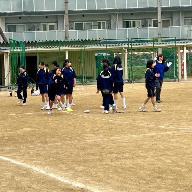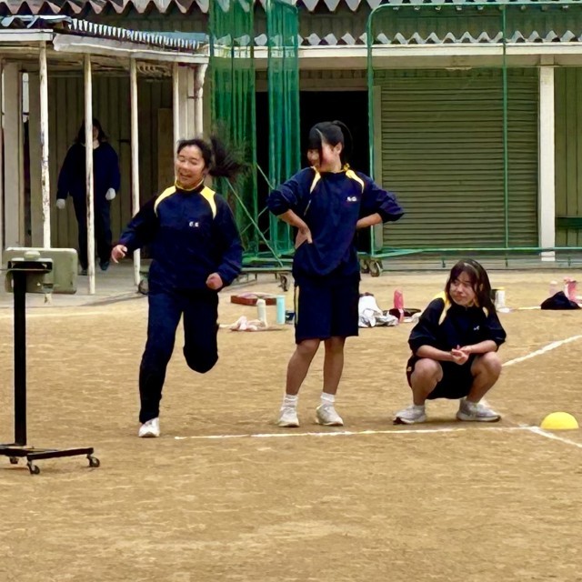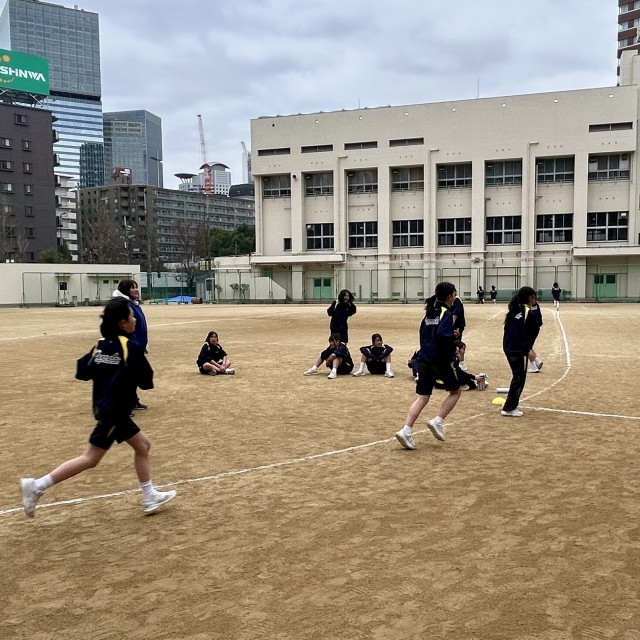 3時間目、グラウンドでは1年1組女子が持久走に取り組んでいます。冬の寒さに負けない力強さを感じます。