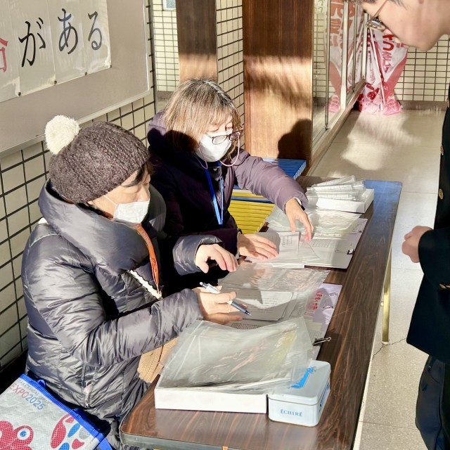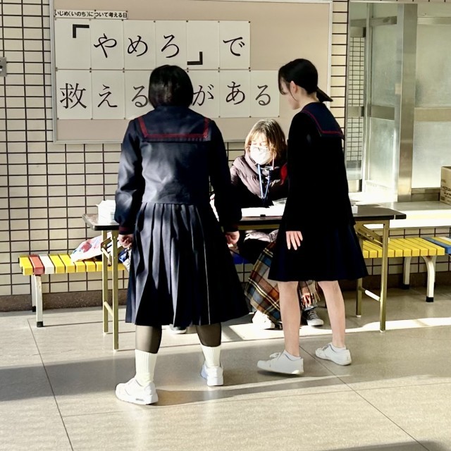 おはようございます。生徒登校時刻に合わせて、大淀中学校元気アップ地域コーディネーターの皆さんが、当日必要な材料費(特殊メーク・お菓子づくり)の受付をしてくださいました。冷え込みの厳しい中ありがとうございました。