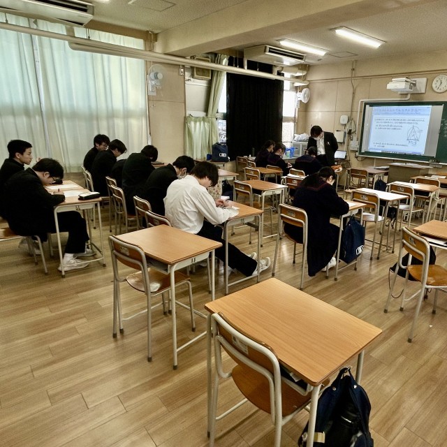 3年3組数学の少人数授業です。少ない人数できめ細やかな指導をしてくださっています。八田先生のクラスです。