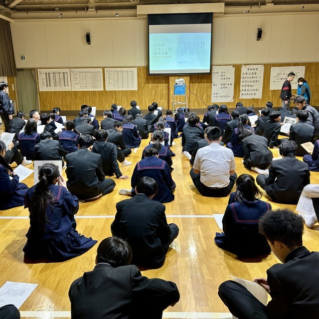 今日は、東日本大震災から15年目の日です。中学1年生が、まだ産まれる前の2011年3月11日14時46分に、日本は、未曾有の大災害に見舞われました。地震と津波、さらに福島原子力発電所の事故、15年経った今でもまだ、被害は修復されていません。