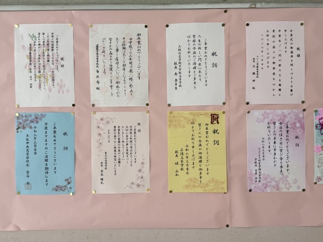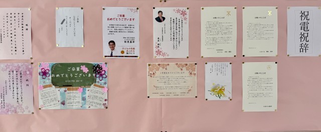 本日の卒業式に向けて、各方面より祝電・祝辞を頂戴いたしました。華を添えていただき誠にありがとうございます。
