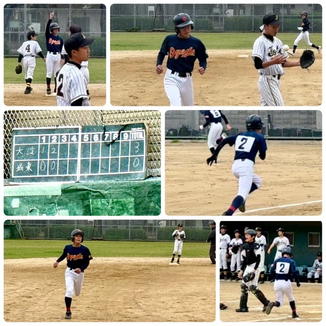 大淀中学校は、先制して善戦しています。投打とも快調です。日頃、学校のグラウンドで顧問の先生方がご指導されている様子が伺えます。