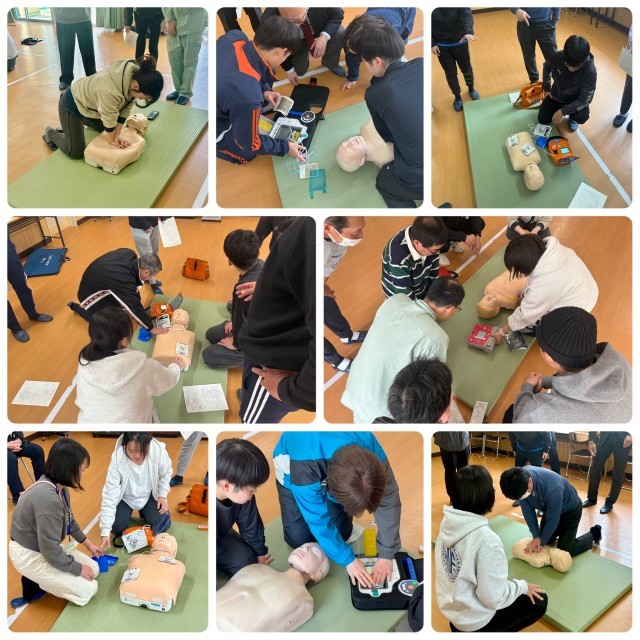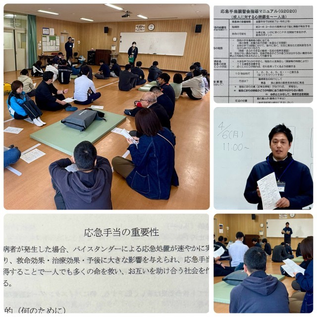 午前11時からは、教職員に加えて部活動指導員の皆さんも参加いただき、救急救命研修会を行いました。