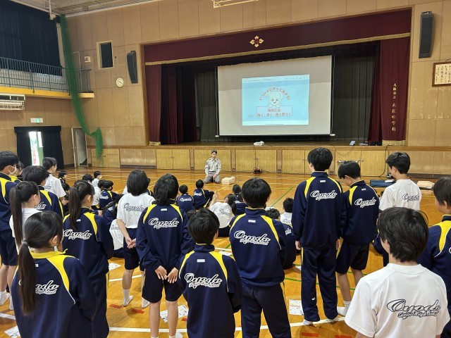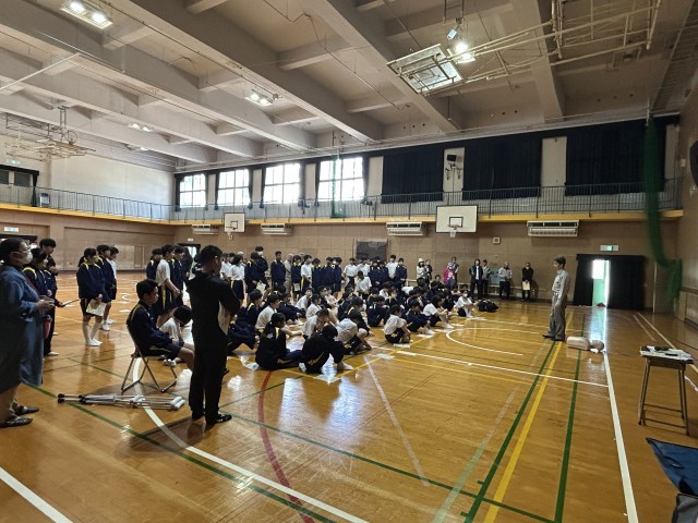 2年生は体育館で、心肺蘇生法を消防署の方から講義、実習いただきました。