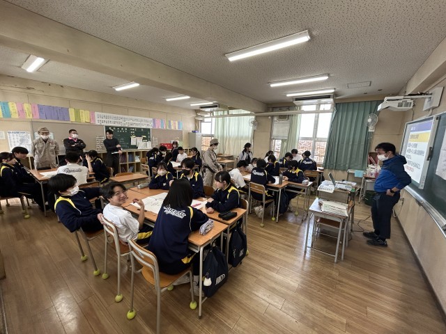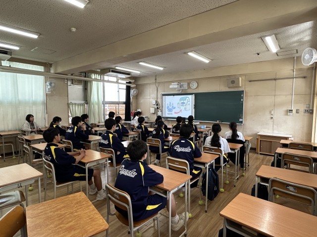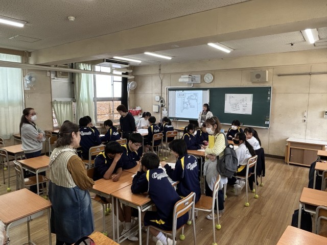 3年生は、各教室で避難所運営ゲーム(HUG)を行いました。担任からパワーポイントで進行して、後半班ごとに対応方法をまとめていきました。