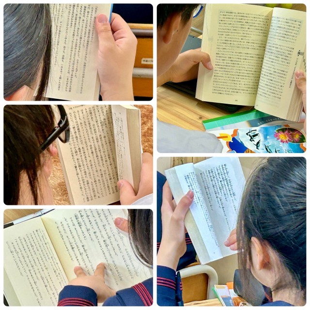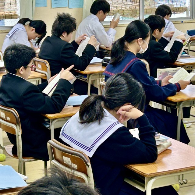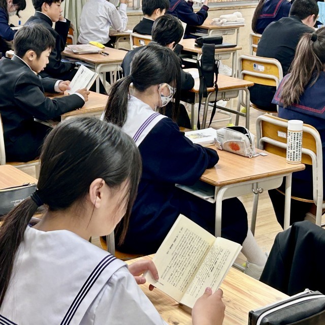 大淀中学校では、朝の短学活終了後1時間目までの時間を「朝の読書活動(朝読)」を推奨しています。