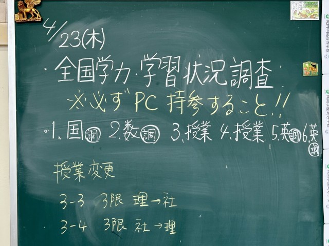 今日は、令和8年度「全国学力・学習状況調査」を実施しています。