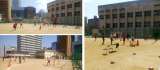 春の日差しの中、運動場では、ハンドボール部が練習しています。顧問の先生と部活動...