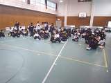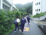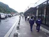 急な雨のため、予定を繰り上げました。 一旦、体育室に避難です。 12:10に出発...