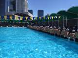 本校では体育館屋上のプールでスカイビルが見下ろす中、常設のテントに加え、大型の折...