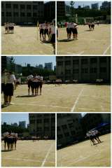二年生による団体種目、棒引きです。スピードとパワー、チームワークで一番強いチーム...