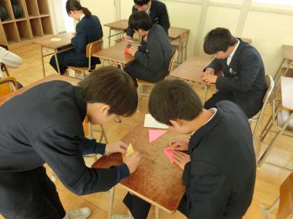 はじめて折る生徒も多くて1羽折るのにすごく時間がかかっていましたが、少しずつはやくなってきました。