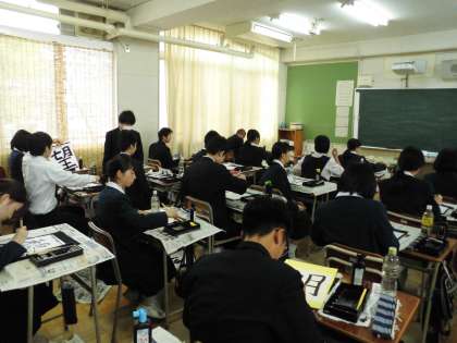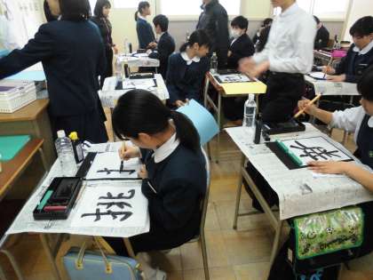 2組をのぞくと書道が始まっていました。