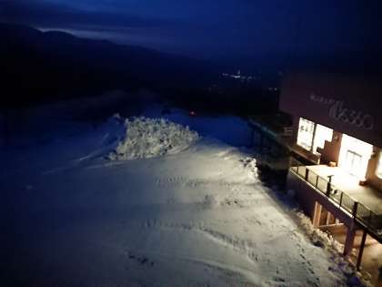 クラスそれぞれ分かれてペンションでおいしい食事をいただいた後、ナイトゴンドラに乗って山頂へ。