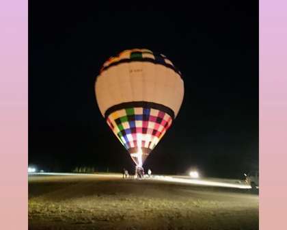何も聞かされず、マイクロバスに乗り、向かった先に現れたのは、なんと大きな熱気球!