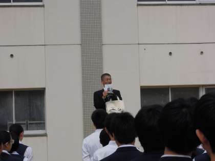 校長先生から、修学旅行での話の後、「笑い」についてお話がありました。