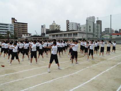 前半部分では、行進、ラジオ体操、校歌の練習が行われました。