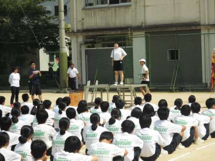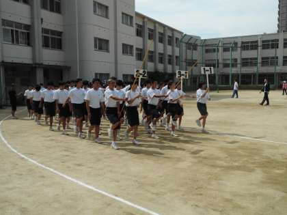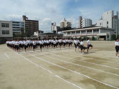体育大会実行委員長のお話から始まり、まず行進の練習をしました。