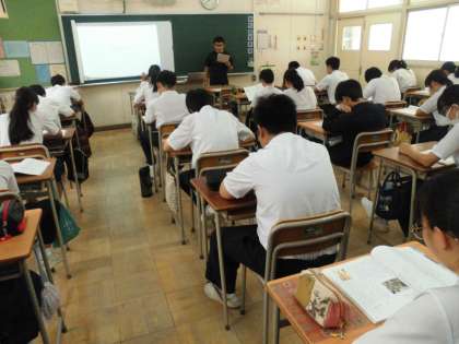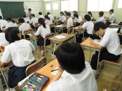 3年生では、1組で「礼儀」について、2組で「向上心」について考えていました。