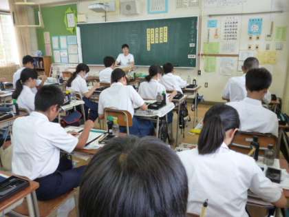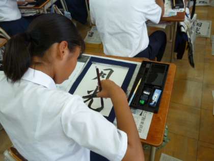 28日(水)4時間目、2-1では、国語の時間に書写に取り組んでいました。