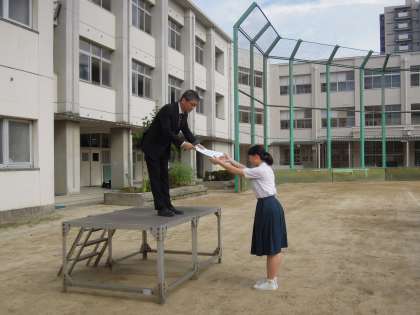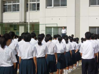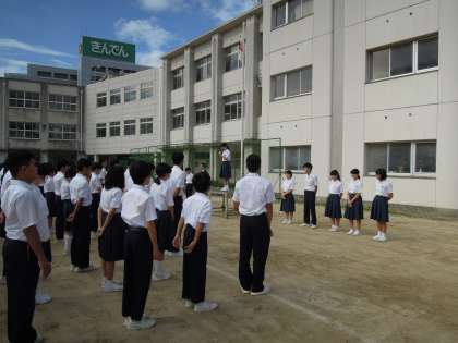 いつもなら校長先生の話の後、集会の最後は生徒会長から話があるのですが、今日は3年学年代表から、今月末に行われる文化発表会に向けて、合唱練習などの取り組みへの心構えの話がありました。