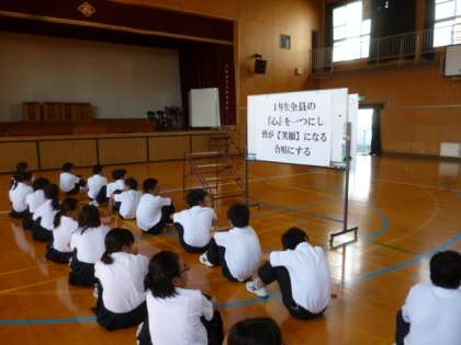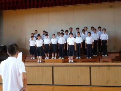 1年生は、初めての文化発表会、イメージがつきにくいので、この時間は体育館に入り、入退場の練習と舞台上での並び方の練習をしていました。