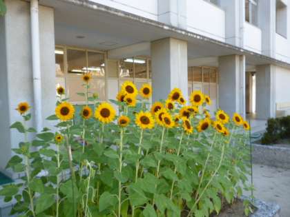 この時期にあわしたかのように、花壇のひまわりも、歌っているようでした。