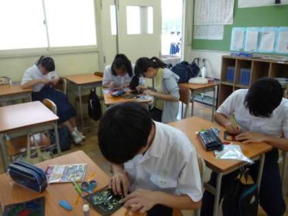 10日(火)、文化祭の歌の練習をしている1年生、作品作りの最後の仕上げしている3年生。