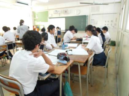 3年生の道徳授業では、班で意見交換して、3色の付箋を貼っていっていました。