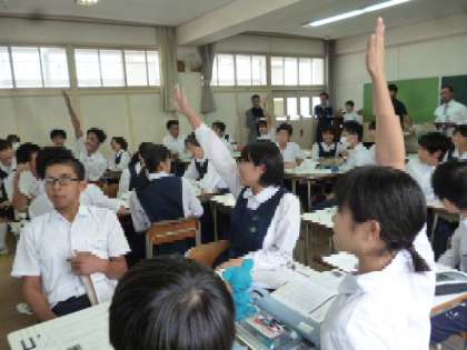 そして、「発表したい班は手を挙げてください。」の声で一斉に手が挙がりました。