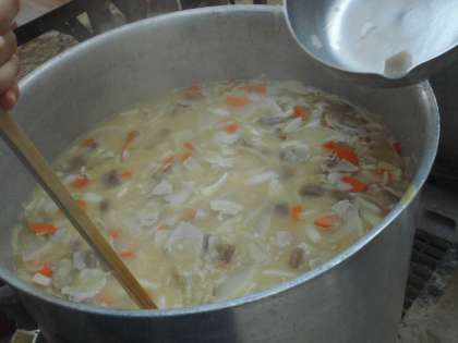 並行して、鍋に切った野菜、お肉を入れて煮込んでいきます。