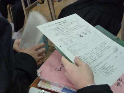 1年生の英語の時間では、グループワークでインタビュー形式でのやり取りをしていました。