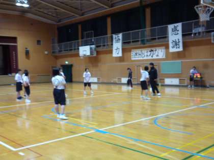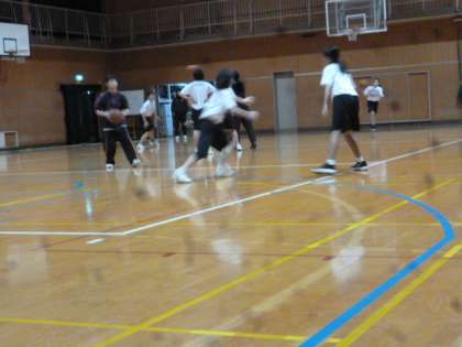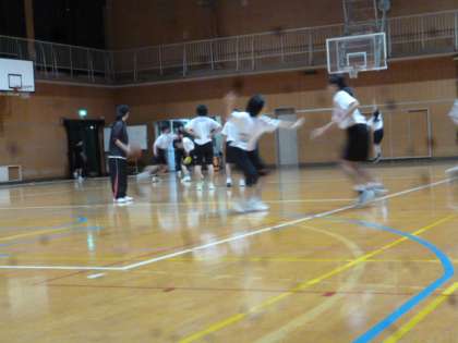 体育館では、女子バスケットボールが練習をしていました。