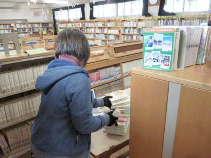 今日は、図書館補助員とコーディネーターさんが早速、バーコードリーダーを使って、蔵書点検をしてくださっていました。