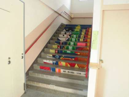 門をくぐると、左に階段があります。これは「4番階段」と呼ばれています。この階段を使って3階の教室へ行きます。