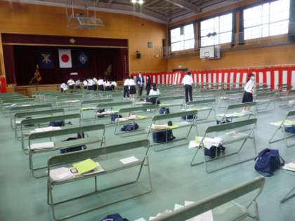 体育館でも同じように、提出物を並べていました。多くの人が、与えられた課題をしっかりとこなしていました。